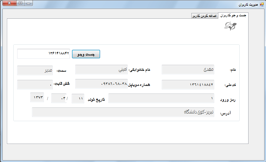جستجو در کاربرانی که یوزر پسور دارند تکمیل