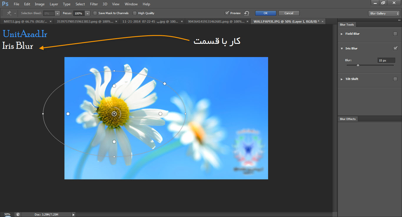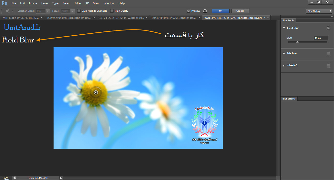 Field Blur : یک سایه یا افکت یکنواخت بر روی تصویر اعمال می کند .