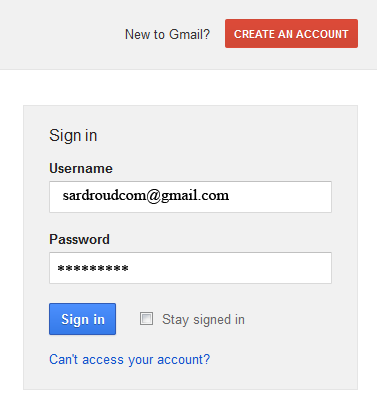 دوباره وارد آدرس جیمیل شوید و نام کاربری و کلمه عبور تعبیه شده را وارد کنید.