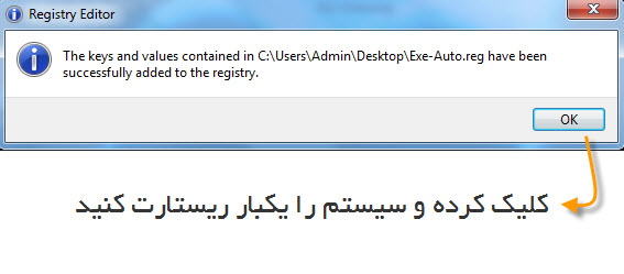 اگه ریستارت کردید ایراد شما رفع شده و دیگر هیچ ایرادی در باز کردن فایل های اجرایی ندارید کافیست نگاه کنید !!