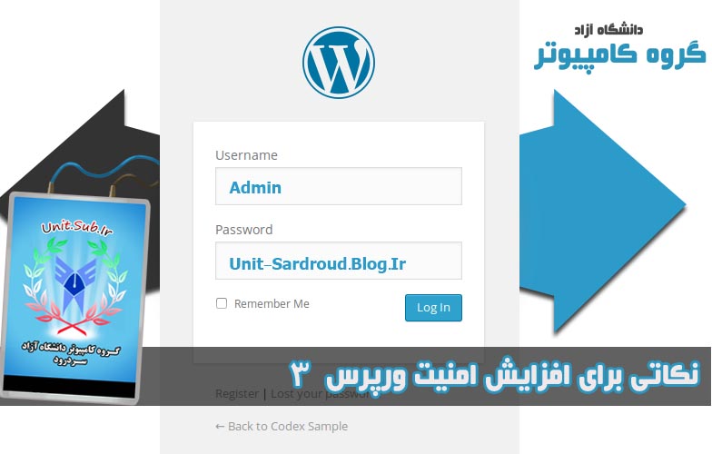 تا قبل از نسخه ی ۳.۰، نصب خودکار وردپرس، کاربری ایجاد می کرد که نام کاربری آن “admin” بود. در نسخه ۳.۰ این بخش به روز رسانی شد، بنابراین در حال حاضر می توانید نام کاربری خود را انتخاب کنید. بسیاری از کاربرها هنوز هم از “admin” به عنوان نام کاربری استفاده می کنند زیرا که به یک نوع استاندارد تبدیل شده، و به خاطر داشتن آن آسان است. برخی از وب سایت های میزبان از اسکریپت های auto-install که هنوز هم نام کاربری ‘admin’ را به طور پیش فرض تنظیم می کنند، استفاده می کنند.