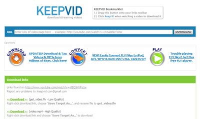 روش اول: استفاده از سایت keepvid می باشد. روش کار با این سایت بسیار ساده است. فقط کافی است لینک فیلم مورد نظرتان را از یوتیوب (یا هر سایت دیگر اشتراک ویدئو) کپی کرده و داخل باکس بالای سایت کیپ وید past نمایید و سپس گزینه ی Download را بزنید.