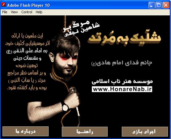بازی زیبای فلش « بازنده » ، محصولی بسیار زیبا و خلاقانه در رابطه با شاهین نجفی ملعون است که توسط یکی از کاربران سایت و مخاطبان ارجمند مؤسسه هنر ناب اسلامی تولید و ارائه شده است.