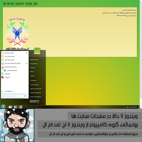 پس از چندی تلاش همکاران و بهره گیری و اقتباس از چندین سایت خارجی موفق شدند پوسته ویندوز 7 را برای صفحات وب ارائه دهند.